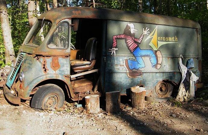 Doch der treue Begleiter, der die Band aus ihrer Geburtswiege Sunapee heraus zu so manchem Auftritt führte, sollte ein deutlich weniger glamouröses Schicksal erleiden als seine Besitzer. Er wurde, und es weiß wohl keiner mehr warum und wie, irgendwo in einem Wald in Chesterfield (nahe Boston) abgestellt und dort einfach vergessen. Nun aber wurde er wiederentdeckt – wenn auch in erbärmlichem Zustand. Rost überall, die Sitze zerfressen, die Innenverkleidungen hängen in Fetzen von der Decke. Ja, der Metro hat definitiv schon bessere Zeiten gesehen.