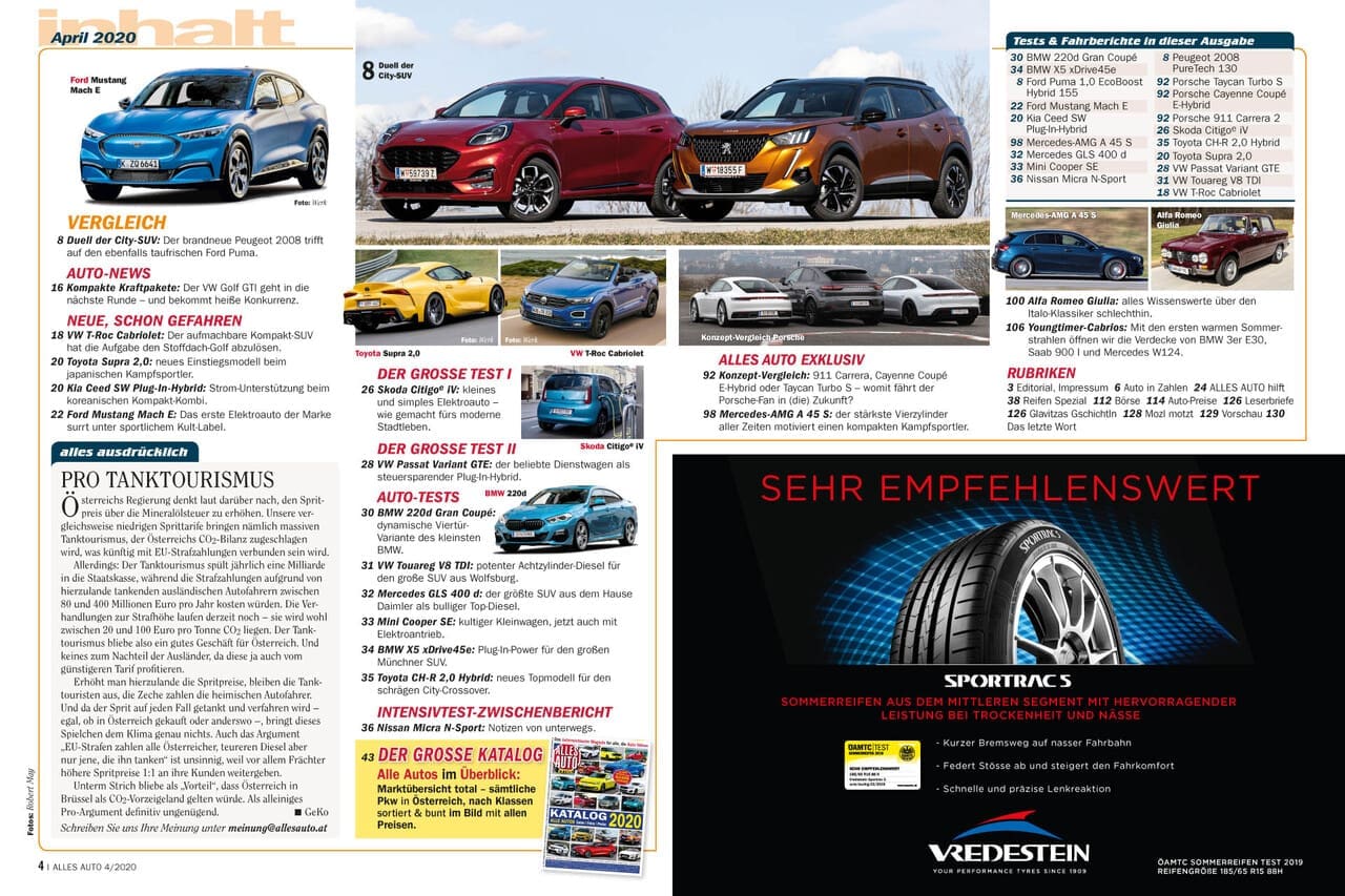 Wir versuchen, ein wenig Normalität für Sie zu vermitteln und haben eine April-Ausgabe produziert, die auch ohne die beiden ausgefallenen Fahrberichte bunt und abwechslungsreich ist. Das liegt schon allein am großen Katalog in Heft-Mitte. Stammleser kennen dieses herausnehmbare Heft im Heft, bei dem wir den heimischen Automarkt auf 48 Seiten abbilden – mit Fotos, Preisen und den wichtigsten technische Daten, übersichtlich gereiht nach Fahrzeugklassen.