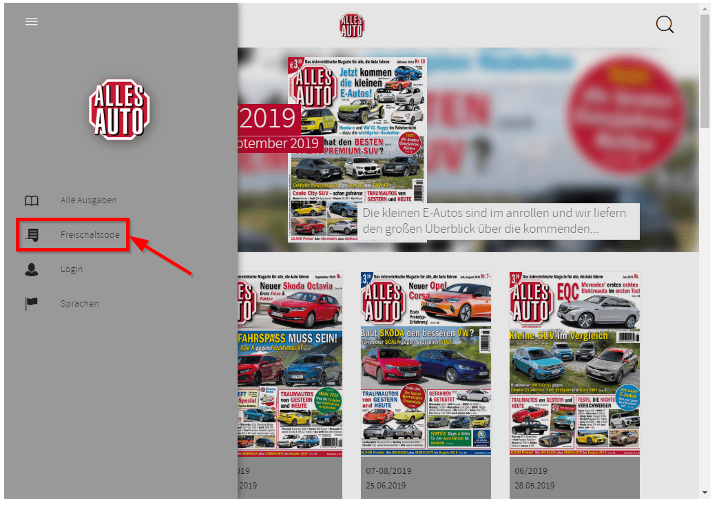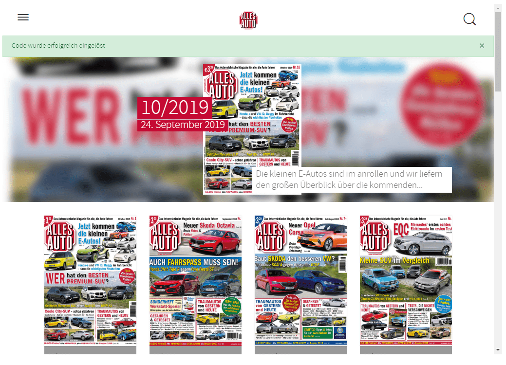Nach Einlösen des Freischaltcodes wechselt die Anzeige wieder auf den Startbildschirm und die Ausgaben, die in Ihrem Abonnement enthalten sind, sind freigeschaltet.
