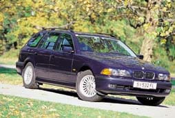 Seidenweicher Lauf, ordentliches Drehmoment und vernünftiger Verbrauch – das ist die Visitenkarte des 2,8-Liter-Sechszylinders. Die adaptive Fünfgang-Automatik reagiert schnell, arbeitet ruckfrei und tut stets das, was man von ihr erwartet. Für Eilige gibt´s den Sport-Modus, für Emsige die Steptronic zum Selberschalten. Top-Federungskomfort: Trotz straffer Abstimmung werden selbst Querfugen gut verdaut. Präzise, etwas indirekte Lenkung, der 5er-touring bleibt in flotten Kurven neutral, bei Lastwechsel wird aber das Heck nervös. Im guten Klassen-Schnitt: das Platzangebot des Bayern, nur die Fond-Kniefreiheit fällt etwas ab. Das schräge Heck knabbert am Ladevolumen, der Kofferraum ist aber gut nutzbar, variabel und serienmäßig mit allen Kombi-Details (Laderaum-Rollo, Dachreling, Spann-Gummis etc.) versehen. Tadellose Ergonomie, perfekte Verarbeitung, feine Ausstattung, ordentliches Sicherheits-Paket. Keine Umwelt-Mankos.