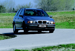 Die dynamische Karosserie-Form mit dem schrägen Heck läßt es bereits erahnen: Der 5er-Kombi punktet mehr mit Eleganz denn mit Transport-Talent. Wer viel einladen will, kommt am Extra geteilte Rücksitzlehne“ wohl nicht vorbei. Zu viert hat man genügend Platz, auch mit Ablagen wird nicht gegeizt. Der starke Sechszylinder arbeitet drehfreudig, kultiviert und zieht auch schon aus dem Tourenkeller kräftig an. Das Fahrwerk des sportlich abgestimmten Bayern erfüllt die Erwartungen aber nicht ganz: Trotz Traktionskontrolle bricht das Heck beim flotten Slalom aus, vollbeladen kann die Federung durchschlagen. Tadellos dagegen: die leichtgängig-präzise Lenkung, das exakte Getriebe und die wirksamen ABS-Bremsen. Empfehlenswert: das günstig kalkulierte Österreich-Paket – die Grundausstattung geriet nämlich nicht allzu üppig. Sportlich-lässige Innen-Einrichtung, Material-Anmutung und Qualität erfüllen die hohen Erwartungen. Vorbildlich bei Sicherheits-Ausrüstung und Umwelt-Bemühungen.