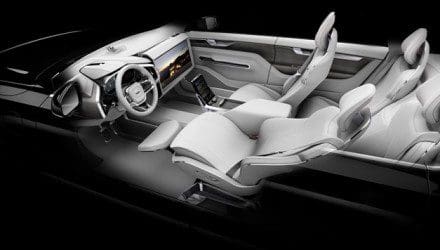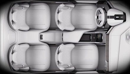 Der Innenraum selbst sieht auf den ersten Blick recht klassisch aus – immerhin geht man davon aus, dass der Fahrer nicht ständig die Elektronik das Steuer übernehmen lässt. Gibt der Fahrer aber die Kontrolle ab, fährt der Fahrersitz zurück und das Armaturenbrett wird zur Arbeitsfläche und Entertainment-Bühne.