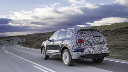 Gleichzeitig dürfte er wohl auch bei gleichen Motoren immer einen Tick kräftiger werden als zuvor. Ob unter seiner Haube auch ein V6 Platz finden wird, ist noch unklar, gilt aber als relativ wahrscheinlich – zumindest in Hinblick auf einen Diesel. Im Innenraum jedenfalls wird das konservative Design durch jede Menge High-Tech aufgepeppt. Digitale Instrumente und ein großer Touchscreen werden das Armaturenbrett dominieren, während sanfte Interieur-Beleuchtung für gemütliche Stimmung sorgt. Egal ob man nun im Stau steht oder einen Berg erklimmt. Immerhin dürfte der Touareg erneut ein durchaus ernst zu nehmender Offroad-Wagen werden, in dem reichtlich clevere Elektronik samt dem Allradantrieb für steten Vortrieb sorgen darf. Details dazu stehen aber noch aus.