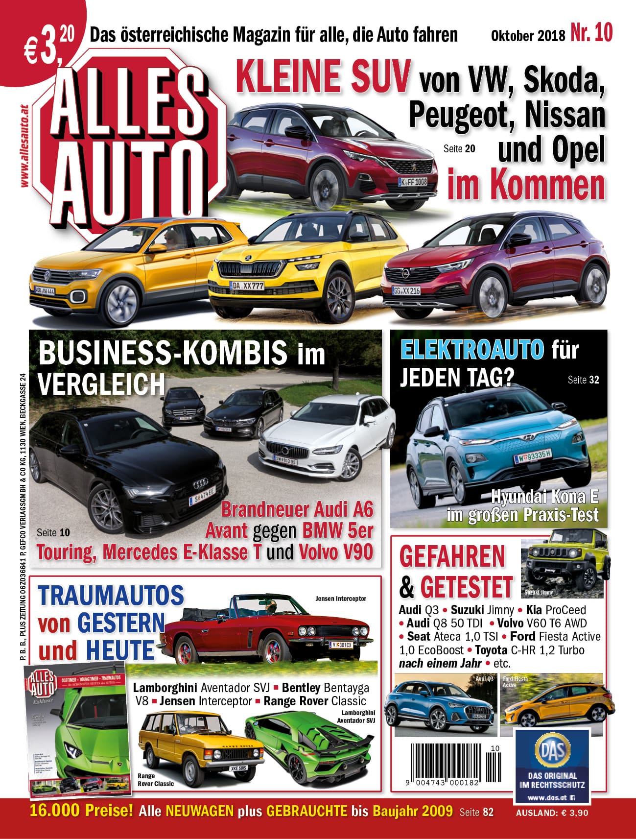 Wie schlägt sich der Hyundai Kona Elektro im großen Test? Wie tut sich der neue Audi A6 Avant im Vergleich zum 5er Touring, E-Klasse T-Modell und dem V90? Welche neuen Kompakt-SUVs kommen in nächster Zeit? Was kann der neue Audi Q3 und ist der Lamborghini Aventador Superveloce Jota wirklich der letzte, tolle Sportwagen? All das und noch viel mehr klärt die neue Ausgabe von ALLES AUTO – ab sofort im Handel!