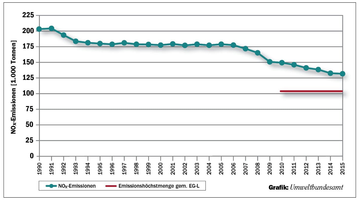 Als einzige Stadt Österreichs könnte das Bundesland Wien selbstständig Fahrverbote anordnen, aber Umweltstadträtin Ulli Sima (SPÖ) erteilte solchen Vorhaben jüngst eine Absage, weil Feinstaub- und Stickoxid-Werte langfristig nach unten zeigen würden. Das weist auch die Grafik des Umweltbundesamtes (siehe unten) aus, nach der die NOx-Werte in ganz Österreich von 1990 bis 2015 um 35 Prozent gesunken seien. Über den europäischen Grenzwerten liegen sie allerdings noch immer.