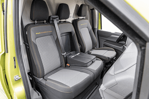 Der neue Transporter wird – über die neuen LED-Scheinwerfer und LED-Rückleuchten hinaus – serienmäßige Features wie eine elektronische Parkbremse plus Auto-Hold-Funktion, ein digitales 12-Zoll-Kombinstrument („Digital Cockpit“), ein Infotainmentsystem (inklusive DAB+, Apple CarPlay, Android Auto, Online-Services und 13-Zoll-Touchscreen), ein Multifunktionslenkrad, einen Regensensor, den Spurhalteassistenten „Lane Assist“, das Notbremssystem „Front Assist“ und eine Verkehrszeichenerkennung mit Falschfahrwarnung an Bord haben. Der Kastenwagen ist zudem serienmäßig mit einer Klimaanlage im Fahrerhaus und Armlehnen am Fahrersitz ausgestattet.