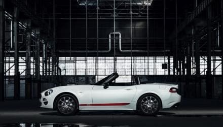 Fiat wird auf dem Genfer Autosalon neue Versionen seines auf dem Mazda MX-5 basierenden Roadsters präsentieren. Zum einen steht am Fiat-Stand selbst der Fiat 124 Spider S-Design, der mit voller Ausstattung, neuen Akzenten wie Alu-Überrollbügeln und einem roten Streiferl auf der Seite die Blicke auf sich ziehen soll. Technisch wird sich aber, so steht bereits fest, nichts ändern. Unter der Haube werkt der selbe 140 PS starke Turbo-Motor mit 1,4 Litern Hubraum, der nach wie vor nur die Hinterräder antreibt und über ein manuelles Sechsgang-Getriebe oder eine Automatik mit eben so vielen Fahrstufen.