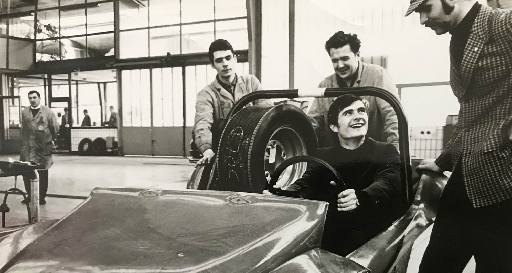 Gösta mobilisierte sofort seinen innersten Freundeskreis mit der bezaubernden „Mimi“ Gerstinger (Wiens erste Kfz-Meisterin) an der Spitze. Mimi war deshalb von großer Bedeutung, weil die VW-Werkstatt ihres Vaters als Kreißsaal (kommt von Kreischen und nicht von im Kreis rennen) für Österreichs ersten Buggy dienen sollte. Gösta Cornelius, ganz auf britisch mit Deerstalker am Denkerkopf und Sakko aus edlem Zwirn, ließ einen Buggy-Kit einfliegen und in Gerstingers Hallen assemblieren.