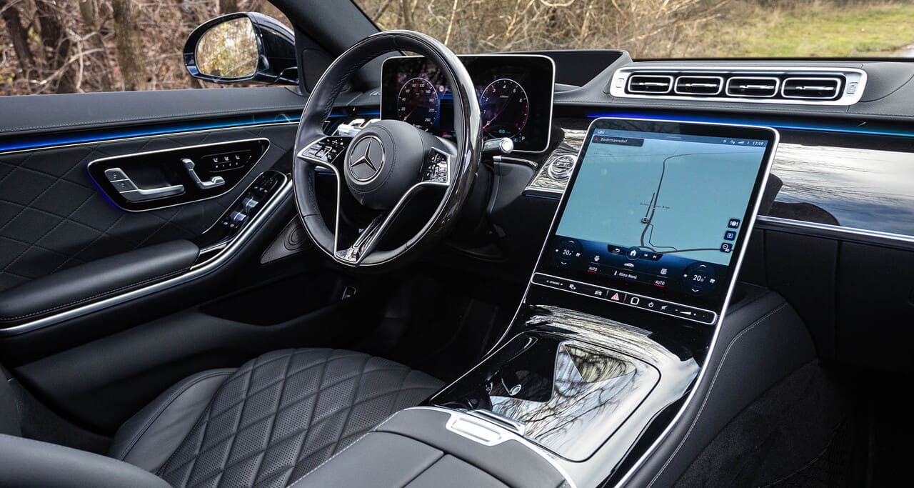 Bedienung & Multimedia – Enorm viele Komfort-Funktionen, die Technik-Verstellmöglichkeiten halten sich zum Glück vergleichsweise in Grenzen. Übersichtliches Digital-Cockpit, gestochen scharfer 13 Zoll-Touchscreen in der Mittelkonsole, feine Sprachsteuerung. Bis auf die Fensterheber-Schalter gibt es kaum noch echte Tasten, die Softtouch-Varianten sind keine wirkliche Verbesserung. Exzellentes Langstrecken-Gestühl.