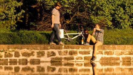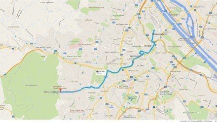 Die Probanden sind gestellt, das Setting ist klar: Flucht aus der Stadt, nach der Arbeit raus ins Grüne. Dafür musste freilich eine glaubwürdige Route her. Das Ergebnis: Wir starten auf der Taborstraße in Wien, ganz in der Nähe von vielen Büros und vor allem: Mitten in der Stadt. Dann führt uns der Weg weiter zum Naschmarkt. Immerhin soll unsere Flucht ins Grüne ja spontan sein, also muss für das Picknick auf der Wiese erst noch eingekauft werden. Und dann geht es schnurstracks richtung Stadtrand. Genauer gesagt gen Westen, zum Lainzer Tiergarten – einem ummauerten Naturschutzgelände direkt in Wien, das auf einer Fläche von 2.450 Hektar einige der schönsten und erholsamsten Flecken der Stadt bietet. Die Route dorthin ist für beide Kontrahenten schwierig. Nur aus unterschiedlichen Gründen …