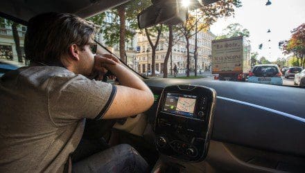 Um 17:00 Uhr ging es los. Die erste Etappe ist nicht lang, aber klar zu Gunsten des Radfahrers ausgelegt. Schon am Start: die Wiener Einbahnregellung schickte uns am Steuer des KFZ gleich einmal in die falsche Richtung. Ulrich konnte das am Rad einfach umgehen… und das Gesetzes-konform. Noch ein wichtiger Punkt nämlich: Für unser Rennen waren beide angehalten sich an alle geltenden Gesetze zu halten. Auch wenn es also gerade am Rad oft nicht gängige Praxis ist, blieb Ulrich bei roten Ampeln stehen, fuhr nur auf Radwegen oder der Straße und missachtete auch sonst keine Gesetze – ebenso wie ich am Steuer des Zoe versteht sich. Just diese besagen freilich auch, dass ich mit meinem Zoe bis zu 50 km/h fahren durfte. Ulrich mag zwar ein guter Radfahrer sein, aber SO gut ist er auch nicht. Die ersten paar grünen Ampeln hintereinander war der Vorsprung des Radlers dahin, die Power des KFZ schlug zu und ich zog vorbei. Wie geahnt war die Freude aber nur kurz. Der Berufsverkehr in der Wiener Innenstadt war gewohnt dicht. Auf der Straße zumindest, nicht am Radweg. Es ergab sich so etwas wie ein Kopf an Kopf Rennen. Immer wieder zog das Freygeist am Zoe vorbei, nur um seinen Vorsprung bei der nächsten roten Ampel wieder zu verlieren – zumindest die sind für Auto- und Radfahrer nämlich gleich geschalten. Irgendwann war es dann aber vorbei. Mitten im Stau stehend war Ulrich auf und davon.