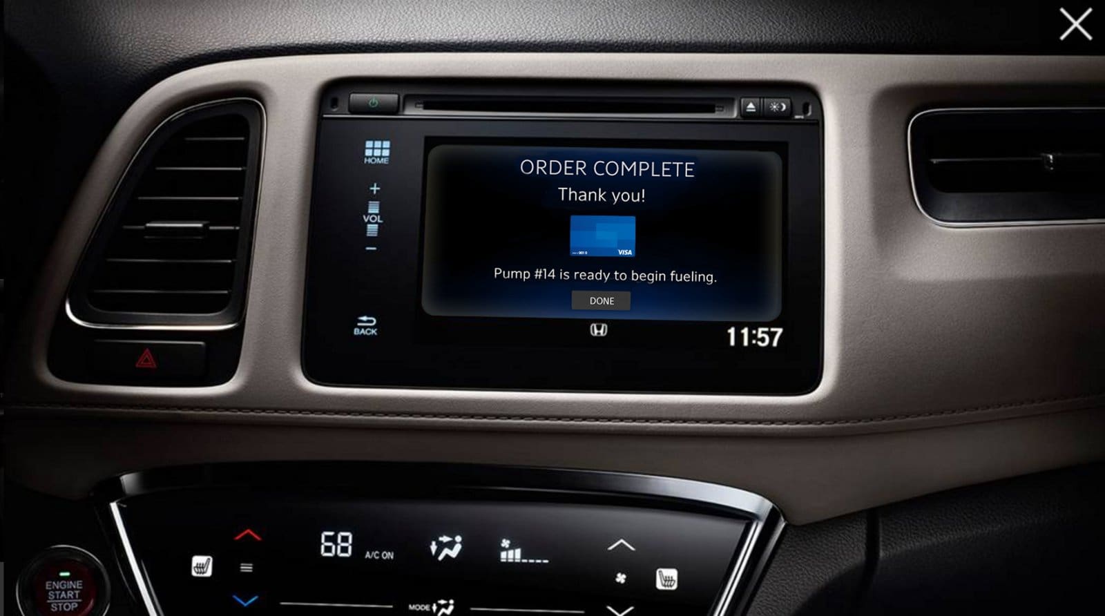 VISA und Honda haben ein Konzeptfahrzeug entwickelt, dass diverse Zahlungsvorgänge direkt aus dem Auto heraus erlaubt. Zwei konkrete Anwendungsbeispiele werden dabei demonstriert. Zum einen setzt einen das Fahrzeug bei niedrigem Kraftstoffstand davon in Kenntnis, dass es eine gute Idee wäre bald mal tanken zu fahren. Soweit, so altbekannt. Dann allerdings sucht der Wagen gleich die nächsten Tankstellen heraus, checkt deren Preise, empfiehlt dem Fahrer die günstigste und lotst ihn auf Wunsch auch gleich hin. Dort angekommen berechnet das Auto die Kosten für eine volle Tankladung und zahlt auf Befehl des Fahrers die Zeche, während der nur kurz aussteigen muss um zu tanken und dann einfach gleich wieder wegfahren kann.
