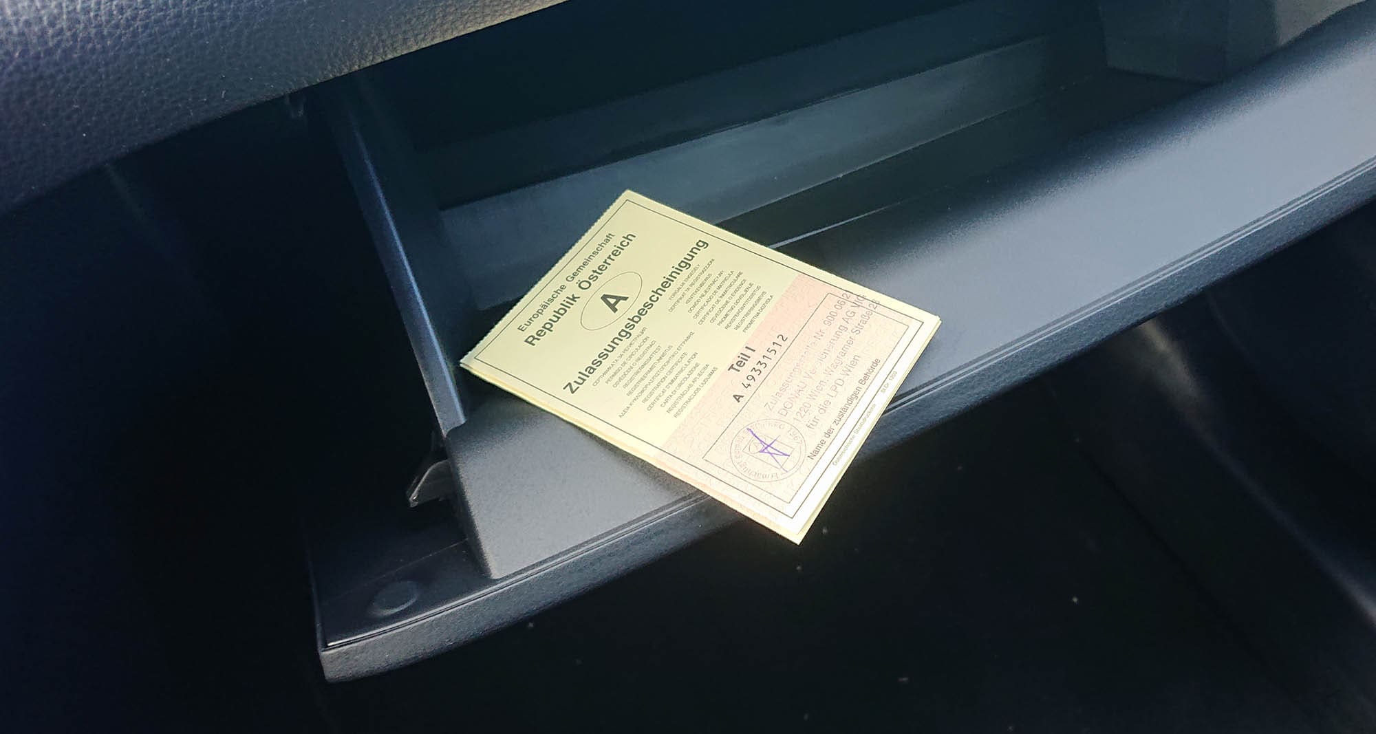 Zulassungsschein im Auto