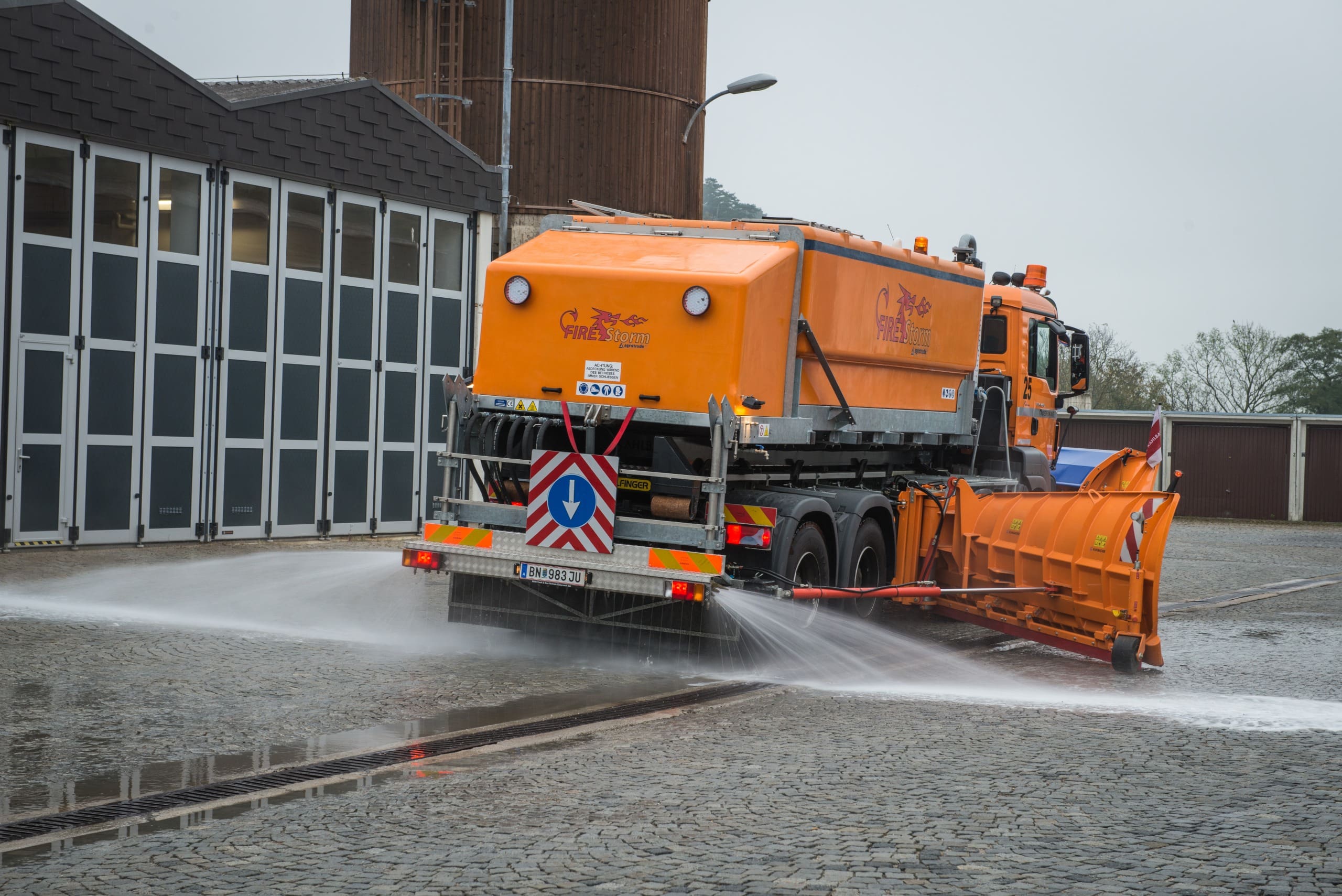 Gestern fuhr ich auf einer zweispurigen Autobahn. Zwei Streuwagen der Straßenmeisterei waren vor mir: Ein Streuwagen auf der rechten Spur, der andere auf der Überholspur, gut 50 Meter vor dem rechten Streuwagen. Beide Wagen waren im Einsatz und fuhren mit geschätzt 80 km/h. Es lag kein Schnee, es wurde daher nicht geräumt, nur gesalzen.