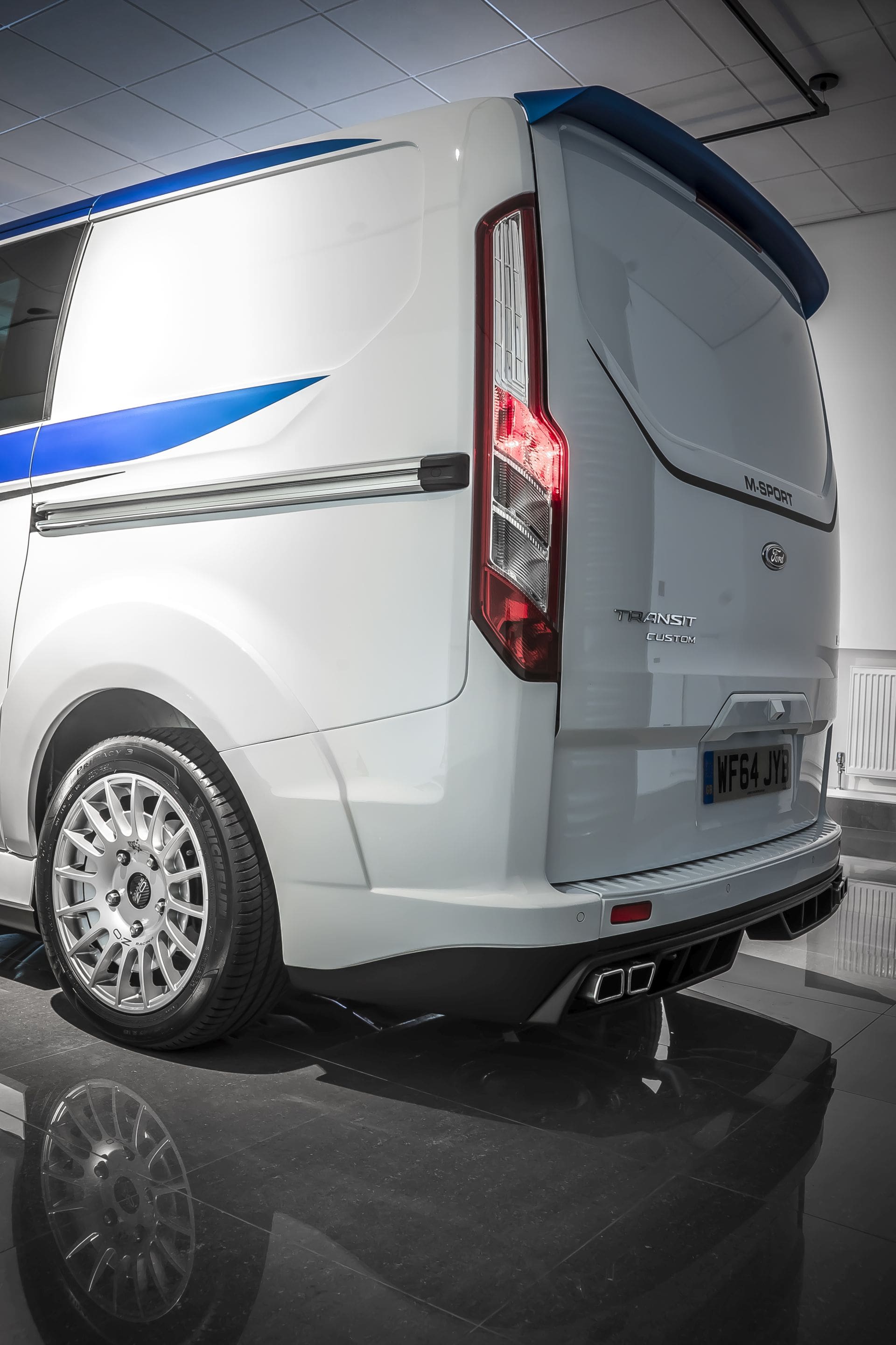 Betreiber wirklich eilig zustellender Eilzustellungsbetriebe hergehört: Die britischen Schrauber von M-Sport haben mal von ihrem WRC-Auto abgelassen und sich, nach dem Transit, nun dem kleinsten Transporter von Ford angenommen. Dem Tourneo. Das Ergebnis seht ihr hier – den M-SPORT FORD CONNECT. Dieser hat nicht nur ein Bodykit mit unverkennbaren Anlehnungen an das World Rallye Car spendiert bekommen, sondern auch diverse andere Extras der, für ein solches Auto, etwas ungewöhnlichen Art: Handgearbeitetes Leder schmückt das Interieur, Schalensitze mit Nappa-Leder-Bezug halten Fahrer und Beifahrer (es gibt nur noch 2 Sitzplätze) an Ort und Stelle, während ein neues Fahrwerk von Eibach gemeinsam mit 18“ OZ-Felgen und Michelin Sport-Bereifung für mehr Dynamik sorgt. Für den dramatischen Abgang wiederum wurde eine neue Abgasanlage mitsamt frischem Heck-Diffusor installiert. Auch ein Heckspoiler findet Verwendung.
