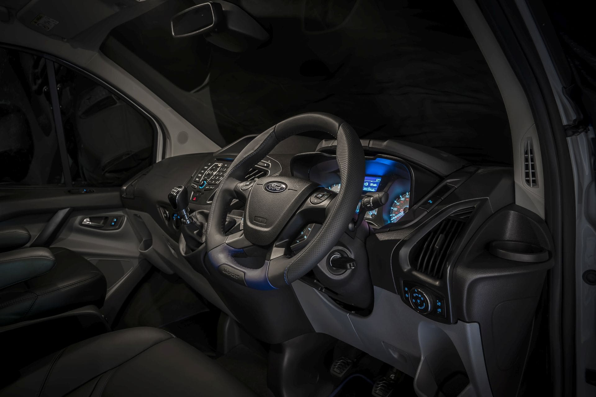 Zu Leistung und Preisen gibt es leider noch keine Infos. Allerdings ist der Wagen ja ohnehin erst einmal nur für den UK-Markt gedacht. Es ist aber nicht gesagt, dass er nicht auch einmal zu uns kommen wird. Immerhin kann man das Erstlingswerk von Van-Sport ab April auch in Österreich ganz regulär beim Ford-Händler ordern: Diesen Ford Transit, mitsamt Styling-Kit (Frontschürze, Kotflügelverbreiterung, Heckschürze), LED Tagfahrlicht, Eibach Fahrwerk, 18″ OZ Alufelgen (silber oder schwarz), modifiziertem Leder Lenkrad, weißem Tacho-Hintergrund, Duplex Auspuffanlage, einer M-Sport Folierung und (wahlweise) mit Lederinnenausstattung.