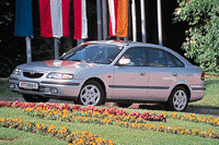 Kein echter Sportler, die 136 PS des 626 GT reichen aber für klassenübliche Power. Leider steigt die Leistungs-Kurve erst ab 4500 Touren – synchron zur Lautstärke der sonst kultivierten Maschine – steil an. Praxis-Plus: deutlich verbesserter Durchzug dank kurz übersetztem Getriebe. Die Gänge lassen sich leicht und exakt sortieren, die Lenkung arbeitet indirekt, aber präzise. Fein dosierbare, wirksame Bremsen, gute Traktion, wenig Windgeräusche, straffe Sitze mit großzügiger Beinauflage. Vorne liegen die Komfortmaße deutlich über dem Klassenschnitt, hinten hapert es etwas an der Kopffreiheit. Lade-Meriten: viel Volumen, niedrige Kante, ebene Fläche sowie dank 2:1-Umlege-Lehne, Ski-Durchreiche und klappbarer Beifahrersitz-Lehne optimale Variabilität. Komplette Komfort-Ausstattung inklusive Klimaautomatik, üppige Serien-Sicherheit, knisterfreie Verarbeitung, Durchschnitt beim Verbrauch. Börsel-Plus: hohe Zuverlässigkeit, Dreijahres-Garantie, fairer Preis.