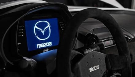 Der MX-5 Speedster Evolution ist dabei ganz auf Performance getrimmt. Als Weiterentwicklung des Speedster-Konzepts von letztem Jahr hat man den kleinen „ganz-oben-ohne-Roadster“ NOCH leichter gemacht – es sollten jetzt unter 900 kg sein. Das in Kombination mit den montierten Semi-Slicks, dem noch tieferen Schwerpunkt und auf Kurven getrimmten Fahrwerk sollte für jede Menge Grip sorgen. Für den passend sportlichen Look im Innenraum sorgt ein Sparco-Lenkrad und ein Digital-Tacho.