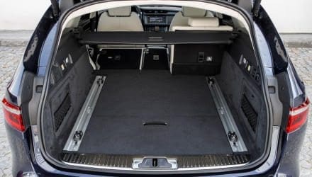 Der britische Nobel-Frachter zeigt mit dem Licht-Halbkreis das Layout der Rückleuchten von F-Type bzw. den SUVs F-Pace und E-Pace – als kleiner Hinweis, dass hier Sportlichkeit und Volumen zusammentreffen. Das Cockpit wartet mit keinen Neuerungen auf und übernimmt die diskrete unprotzige Noblesse des Viertürers. Der Premium-Anspruch gilt auch für das Heckabteil, ohne dabei den Praxis-Nutzen außer Acht zu lassen: Hochwertige Teppiche auch an den Seitenteilen, die der einfacheren Beladung wegen zudem geradlinig und unzerklüftet gestaltet wurden. Dazu sind längs verlaufende Schienen mit verschiebbaren Verzurr-Ösen, ein Gepäcks-Netz und die im Verhältnis 40:20:40 geteilt umlegbare Rückbank an Bord, die Heckklappe öffnet und schließt optional elektrisch.