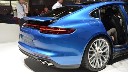 Die „Main Stage“ gehörte bei Porsche in Paris ja eigentlich dem neuen Porsche Panamera Hybrid – also DEM Panamera, dem sie eine vom 918 adaptierte Hybrid-Einheit eingepflanzt haben, durch die der 462 PS starke Zuffenhausener auf einen Durchschnittsverbrauch von 2,5l/100km im neuen Zyklus kommt. Zudem schafft der Plug-In-Porsche nach voller Strom-Betankung bis zu 50 Kilometer rein elektrisch. Und das bis zu einer Geschwindigkeit von 140 km/h. Lässt man den V6-Biturbo mitarbeiten, schafft der Hybrid aus dem Stand in 4,6 Sekunden den Spurt auf 100.
