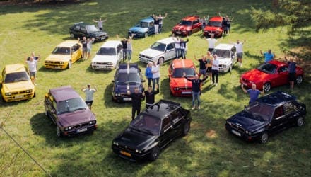 Ralph Sauer, Inhaber des auf Reparaturen und Restaurierungen italienischer Fahrzeuge spezialisierten Unternehmens JMR im unterfränkischen Goldbach, und Werner Blaettel, Spezialist für den Lancia Delta integrale, versammelten jetzt mehr als ein Dutzend dieser Kult-Allradler zu einem weltweit einzigartigen Treffen. Im Rahmen des „Special Meeting“ posierten elf Exemplare aus zeitgenössischen Werkssonderserien für Fotos, ergänzt durch vier Fahrzeuge aus Kleinstserien privater Tuner. Vertreten waren Delta aus den Baureihen Evoluzione 1 (ab 1991) und Evoluzione 2 (ab 1993).
